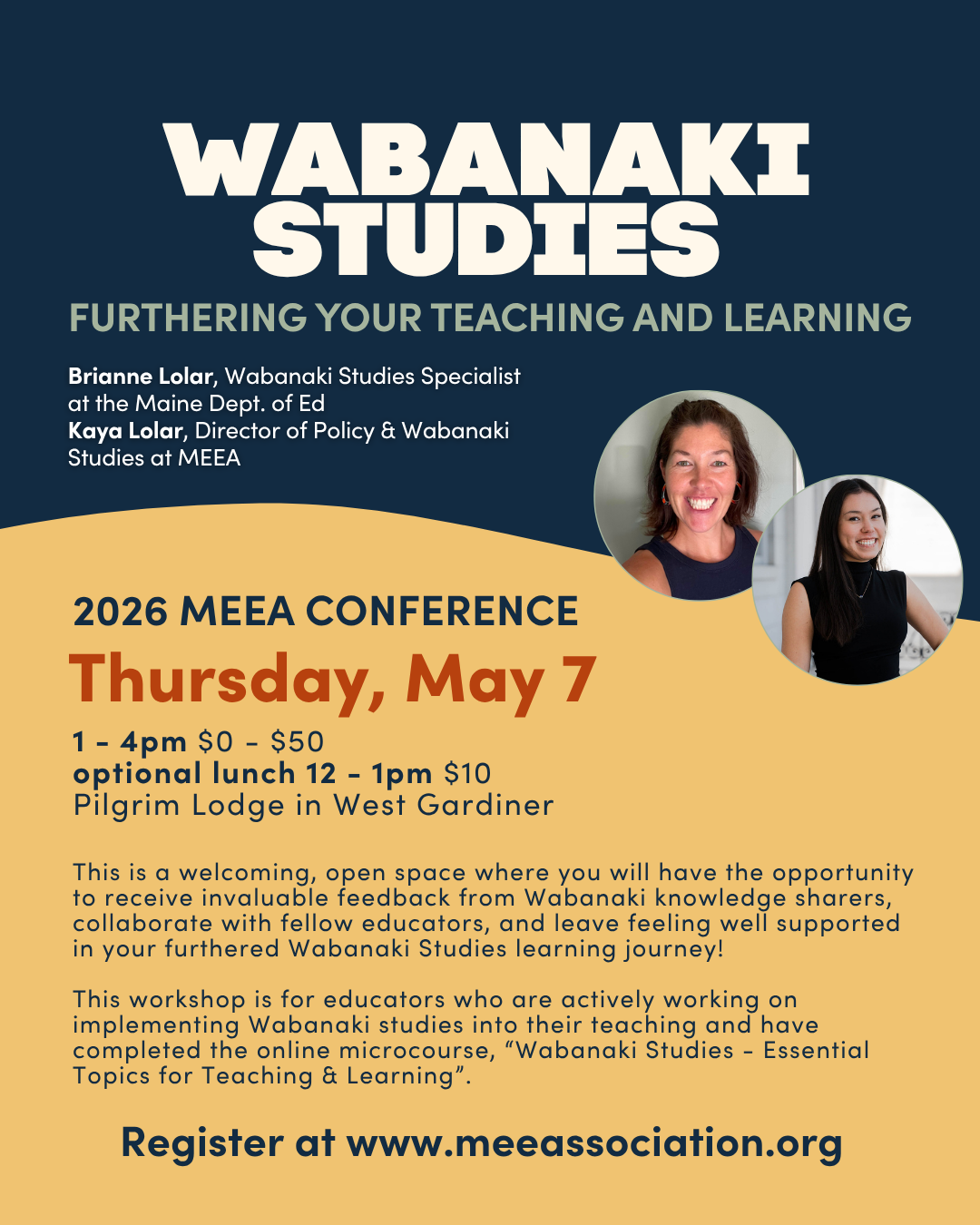 This 3-hour collaborative work session is intended for educators who are actively working on implementing Wabanaki studies into their teaching practices and have completed the online microcourse, “Wabanaki Studies - Essential Topics for Teaching & Learning”. Please bring any lessons, activities, or resources that you have been building to workshop in the company of Wabanaki advisors and other educators. This is a welcoming and open space where you will have the opportunity to receive invaluable feedback from Wabanaki knowledge sharers, collaborate with fellow educators, and leave feeling well supported in your furthered Wabanaki Studies learning journey! If you have not yet taken the microcourse, but would like to before May in order to attend this workshop, please contact brianne.lolar@maine.gov.