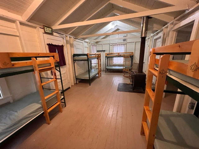 Pilgrim Lodge cabins are a short walk to the conference location buildings and are accessed by a boardwalk. You will need to provide your own bedding, including pillows, blankets, and sheets. The cabins fit up to four adults, have wood stove heat, a bathroom, and a shower. There are two accessible ramp-entry cabins that fit up to three adults that have accessible showers and bathroom.